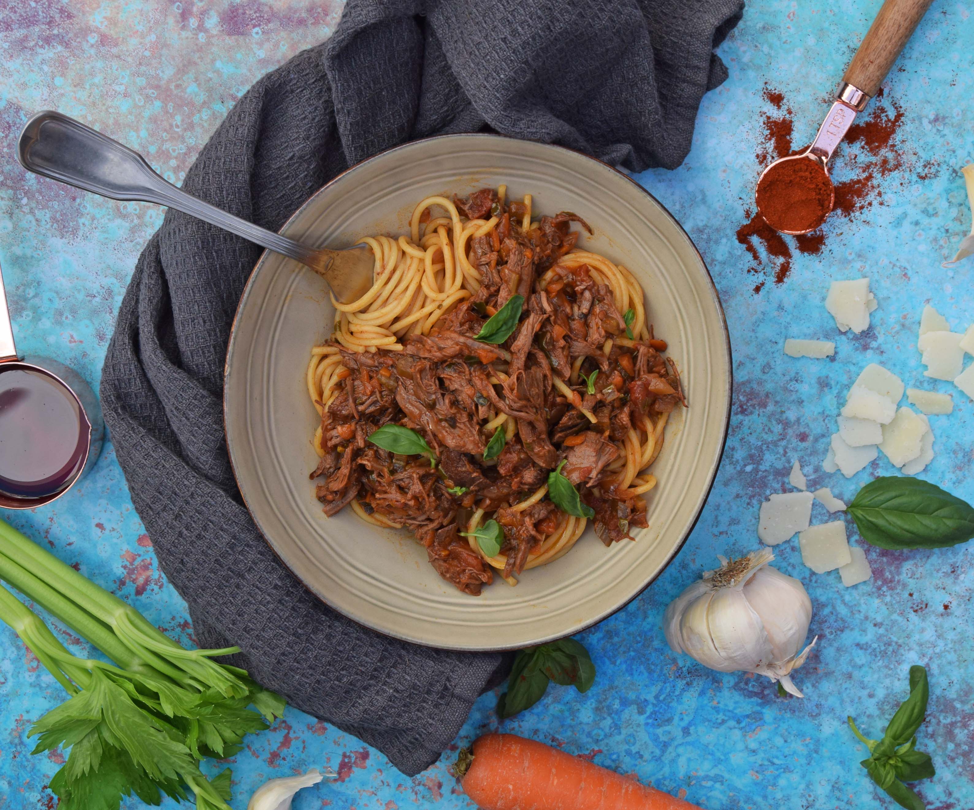 Slow cooked Shredded Beef Bolognese