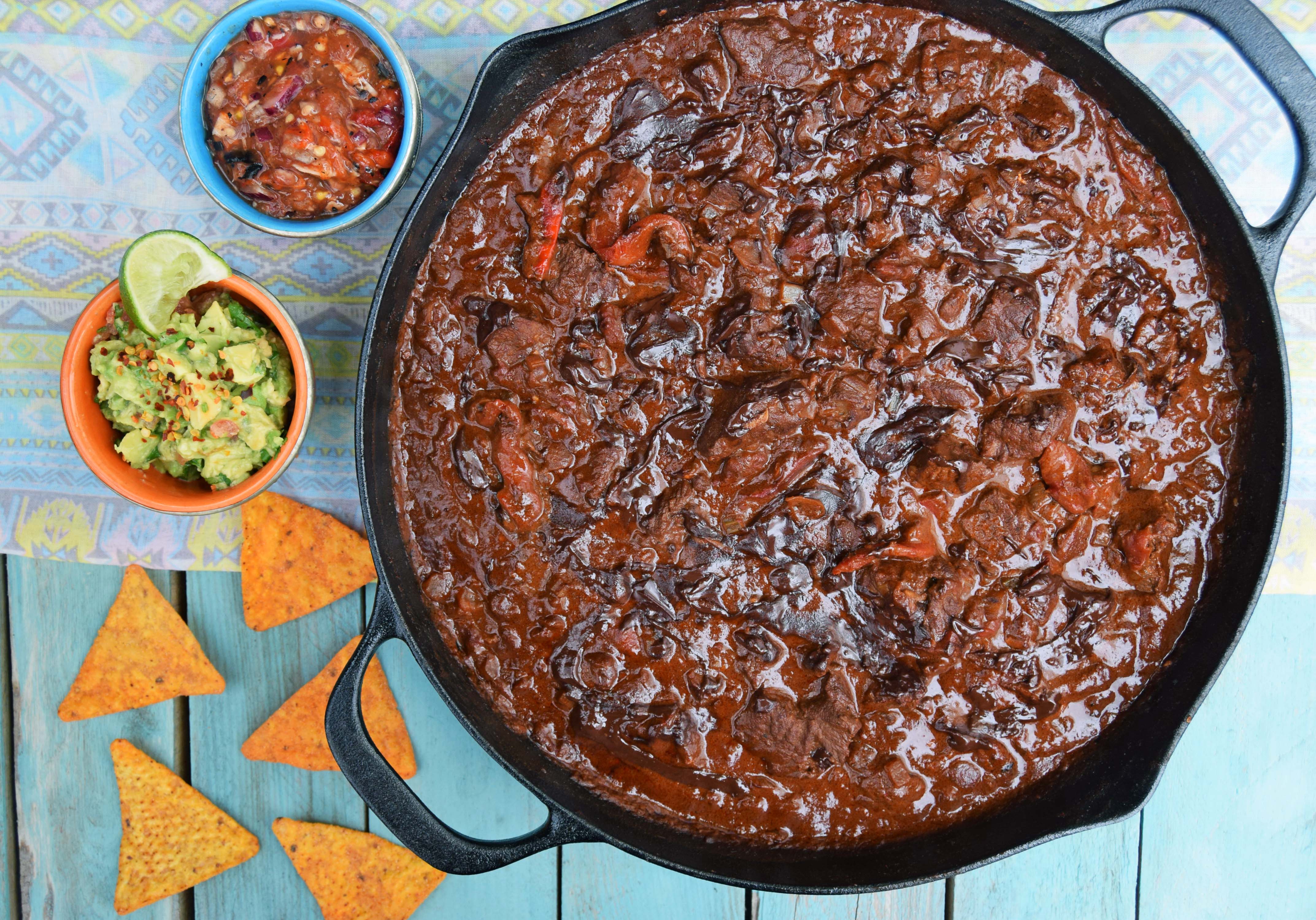 I have been cooking this recipe for a few years, I loved the idea of cooking a chilli with chunks of beef rather than mince. This recipe involves marinating the meat over night and then using this marinade as the base of the chilli.