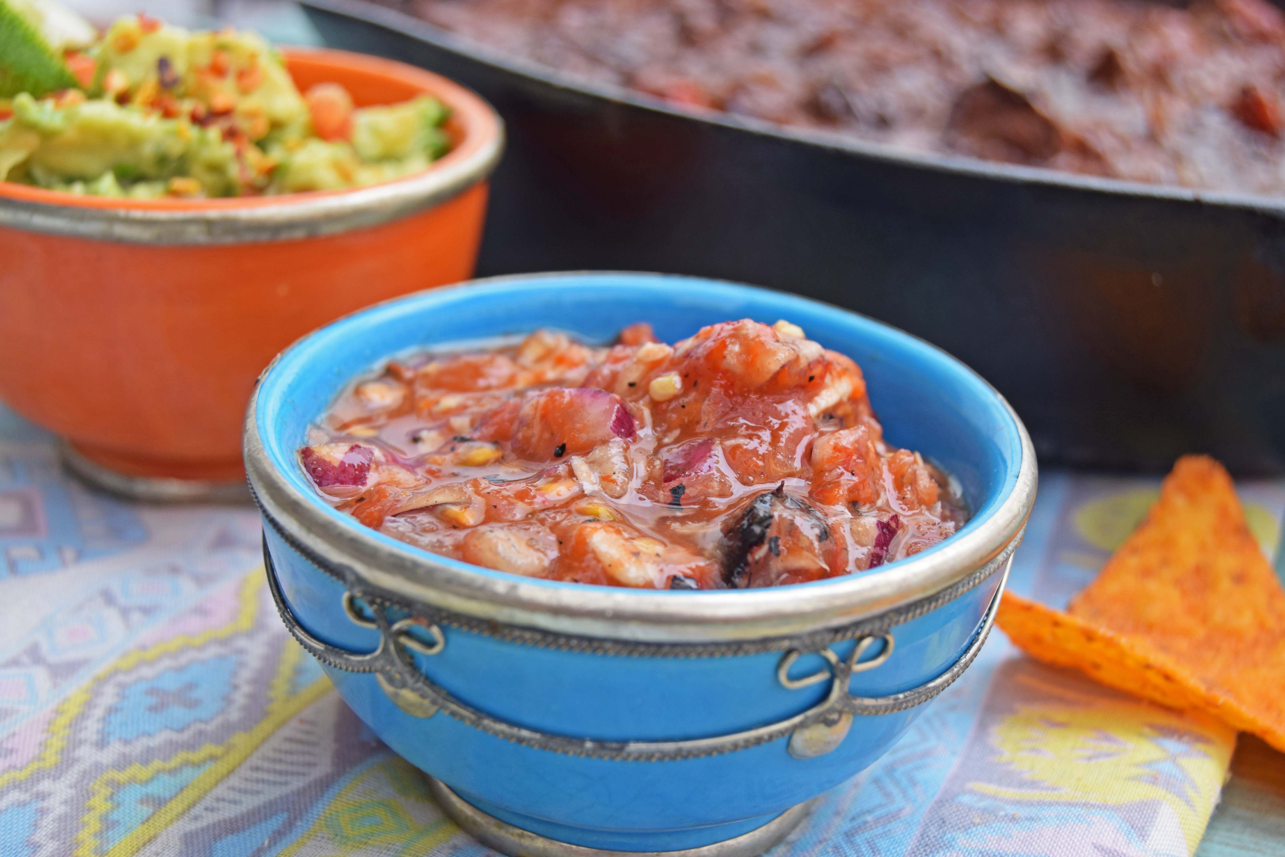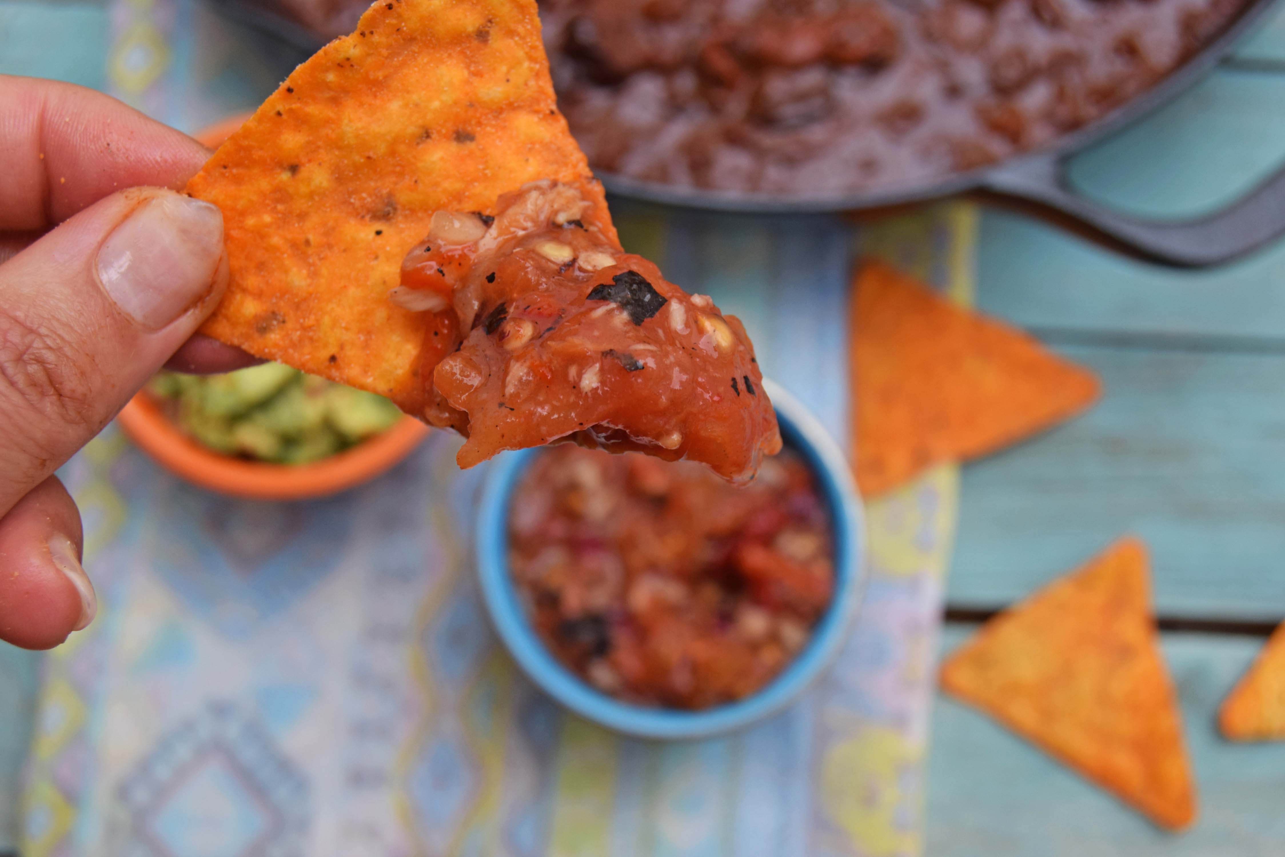 This works well with guacamole, refried beans and my Roasted Tomato salsa, click for the recipe
