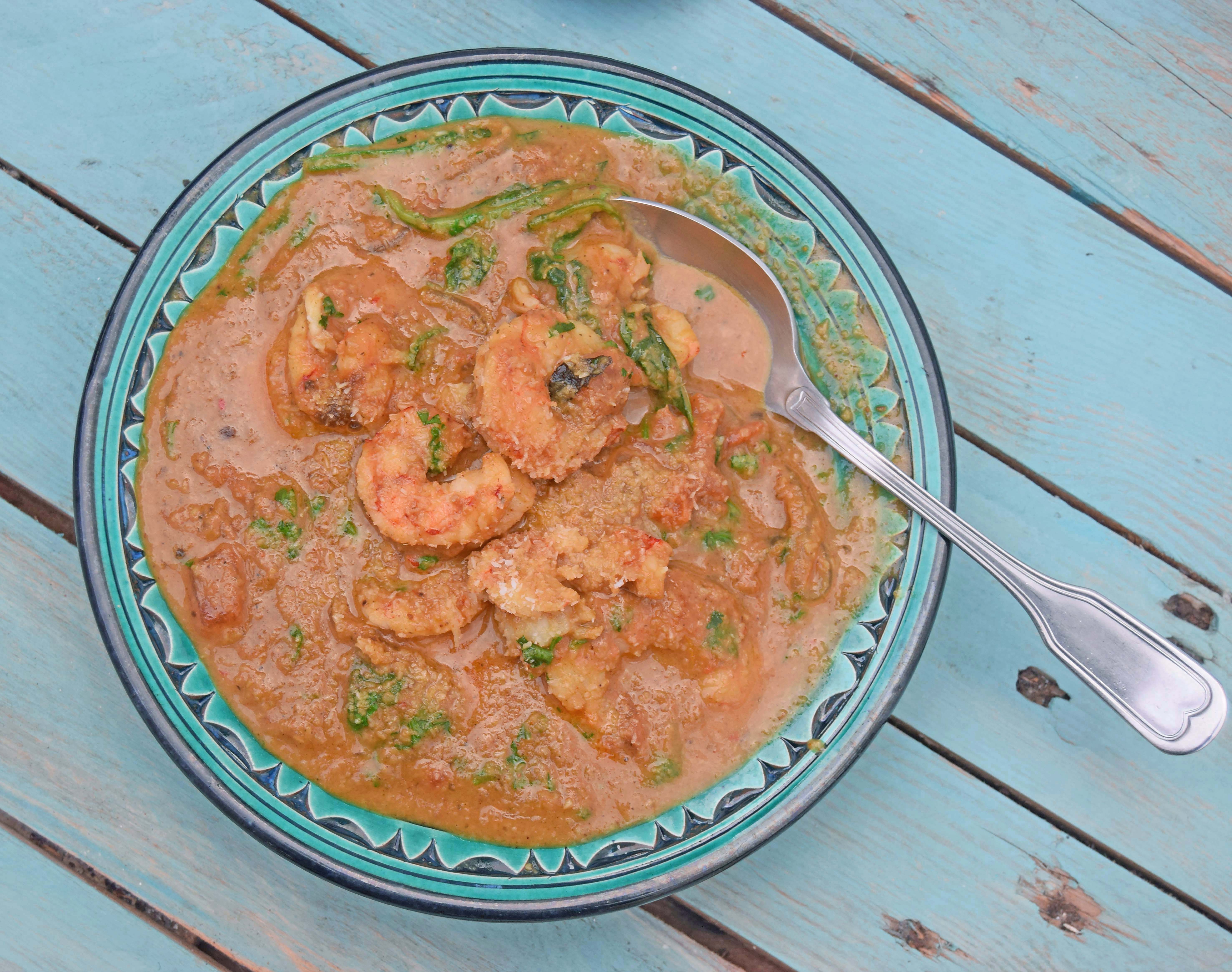 - Place into a hand blender or smoothie maker. Add the tamarind and curry powder. Season with salt.