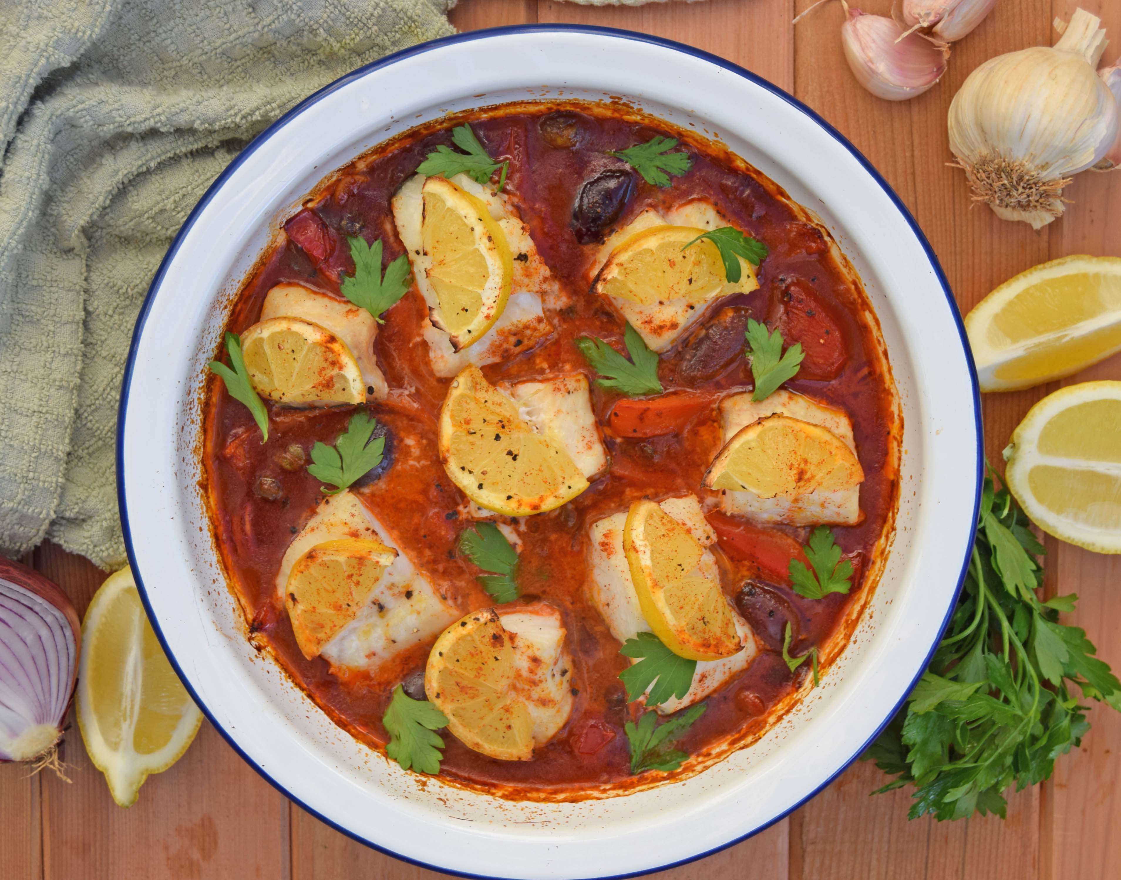 This is a tasty and healthy bake, with the flavours of the med. Simple to put together and delicious.