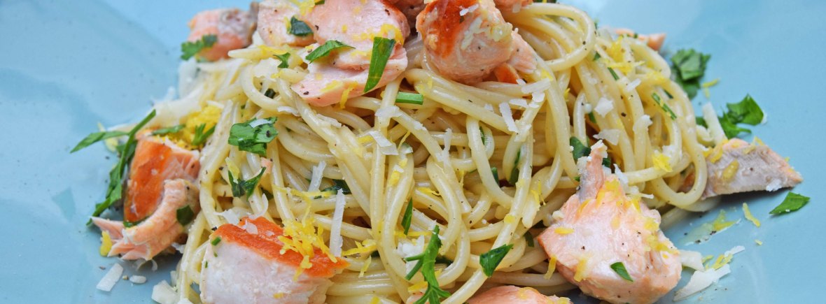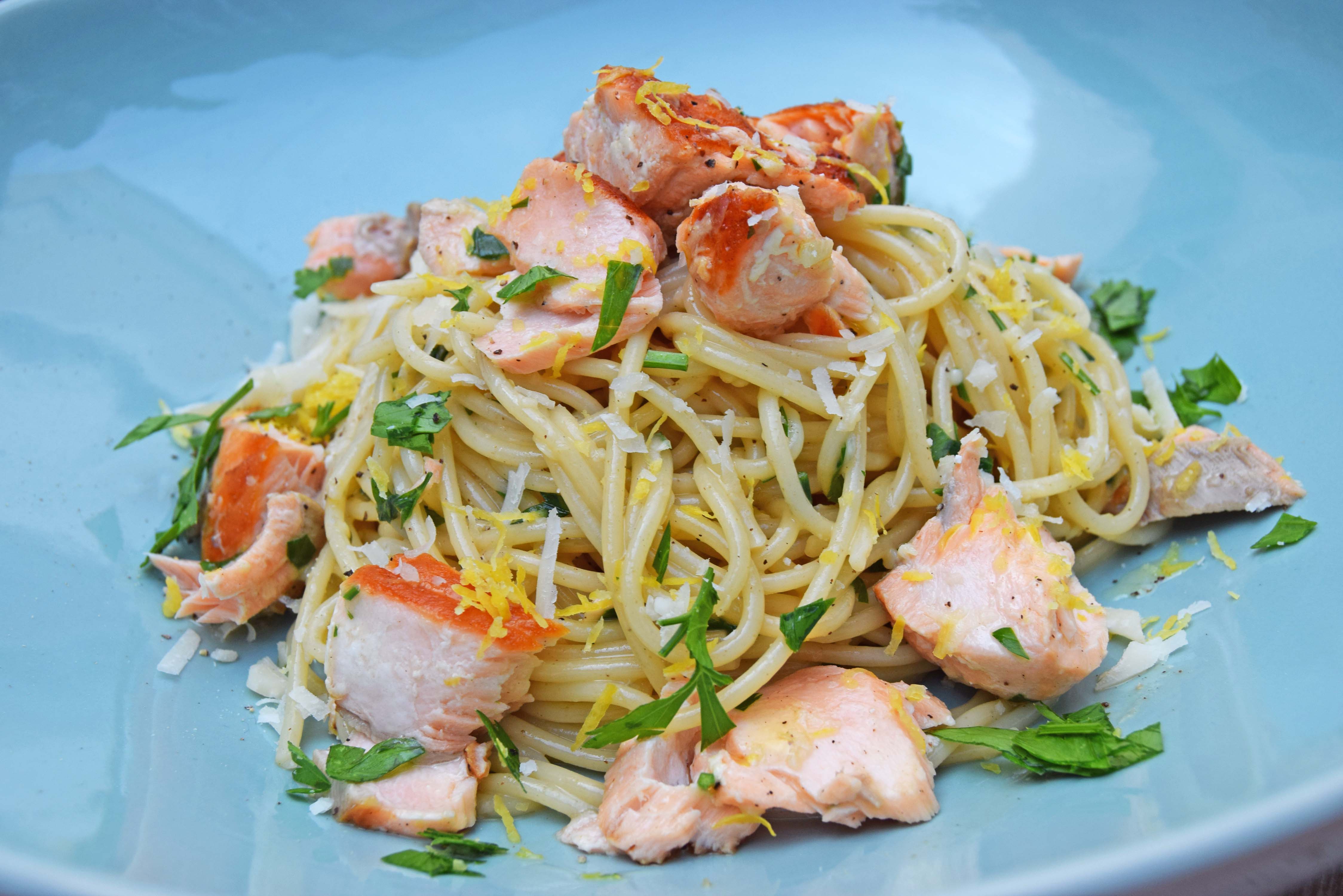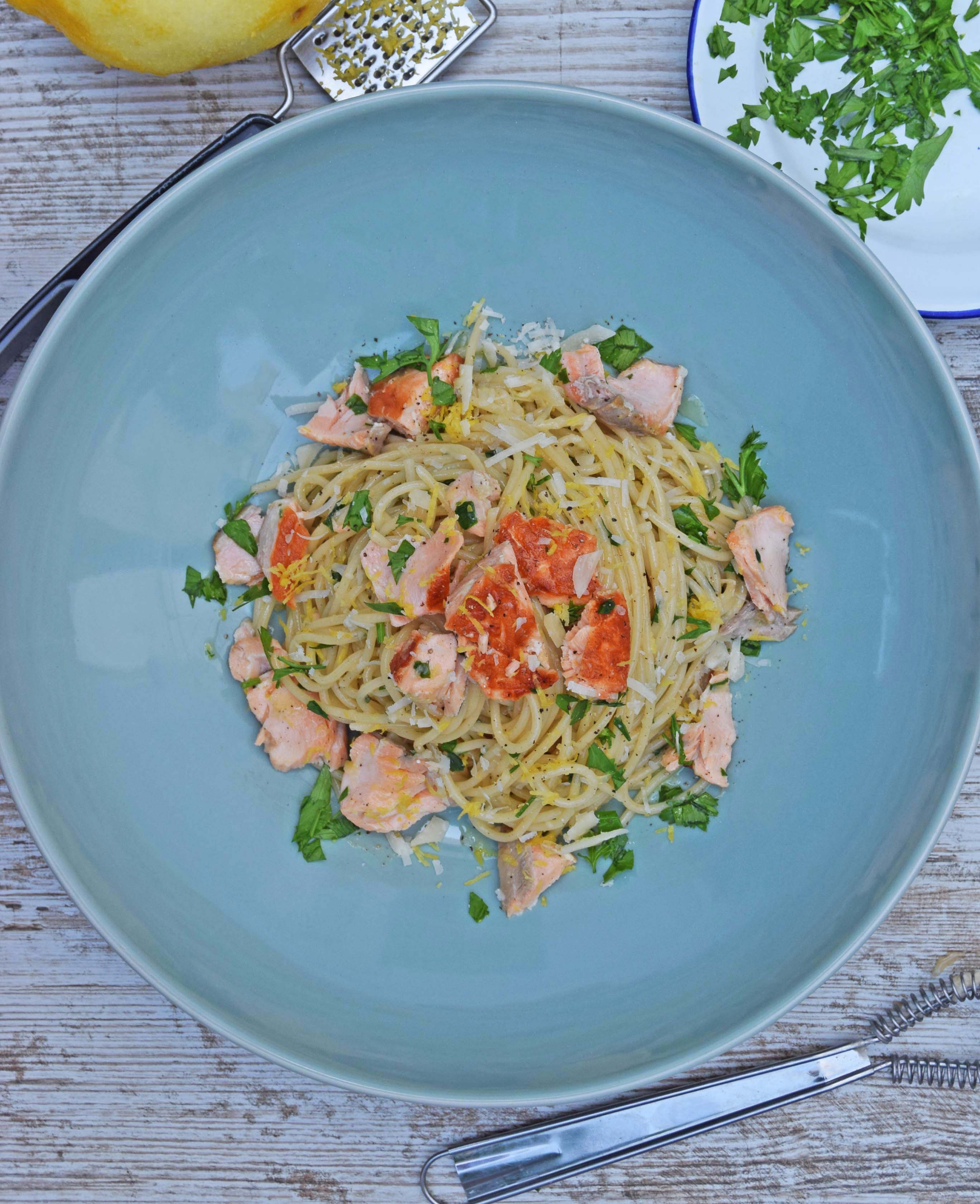 Carbonara with a twist, using Salmon and adding lemon really creates a beautiful pasta dish.