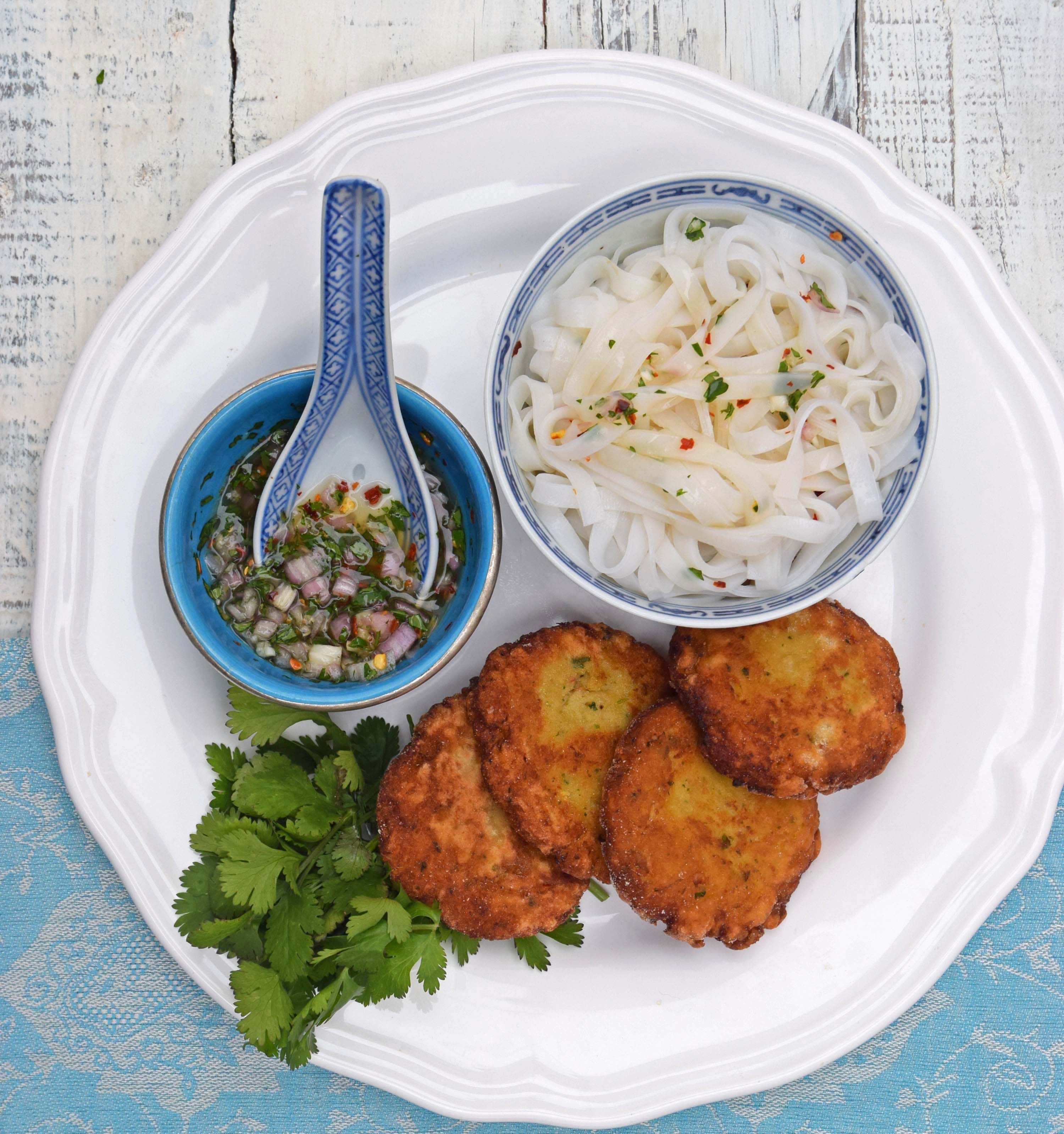 These fish cakes are very tasty, but the dip with the noodles stole the show for me. Very clean and super delicious.