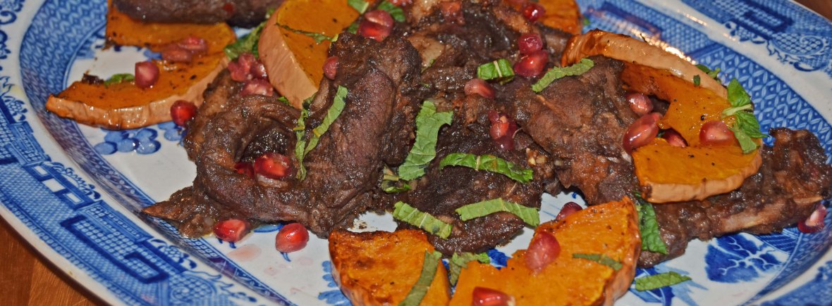 - Serve on its own or with sliced butternut squash and salad. Sprinkle over the extra mint and pomegranates for decoration.