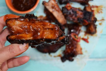 Slow cooked pork ribs in a sweet and spicy bbq marinade.
