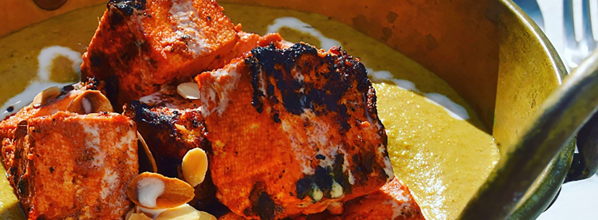 The tofu is tasty and meaty, and the curry is creamy and aromatic. It is a delightful alternative to the traditional version. The tofu is marinated in a blend of spices, and cooked to be char grilled.”This vegan korma recipe is a delightful alternative to the traditional version. The tofu is marinated in a rich blend of aromatic spices, and then char-grilled to perfection. The creamy curry is packed with flavor and the tofu has a meaty texture, making it a tasty choice even for non-vegans.”