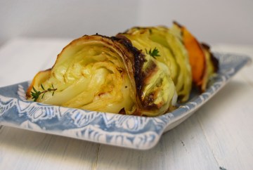 A totally yummy side dish or a good meat free meal in itself. Really simple to make, and moreish. Ingredients: 1tbsp. Olive oil White cabbage sliced into wedges 1/2 lemon cut into wedges Olive oil Fresh thyme leaves 1 tsp. Sea salt Lay the cabbage in an oven tray and sprinkle with salt, then pour … Continue reading Roasted White Cabbage