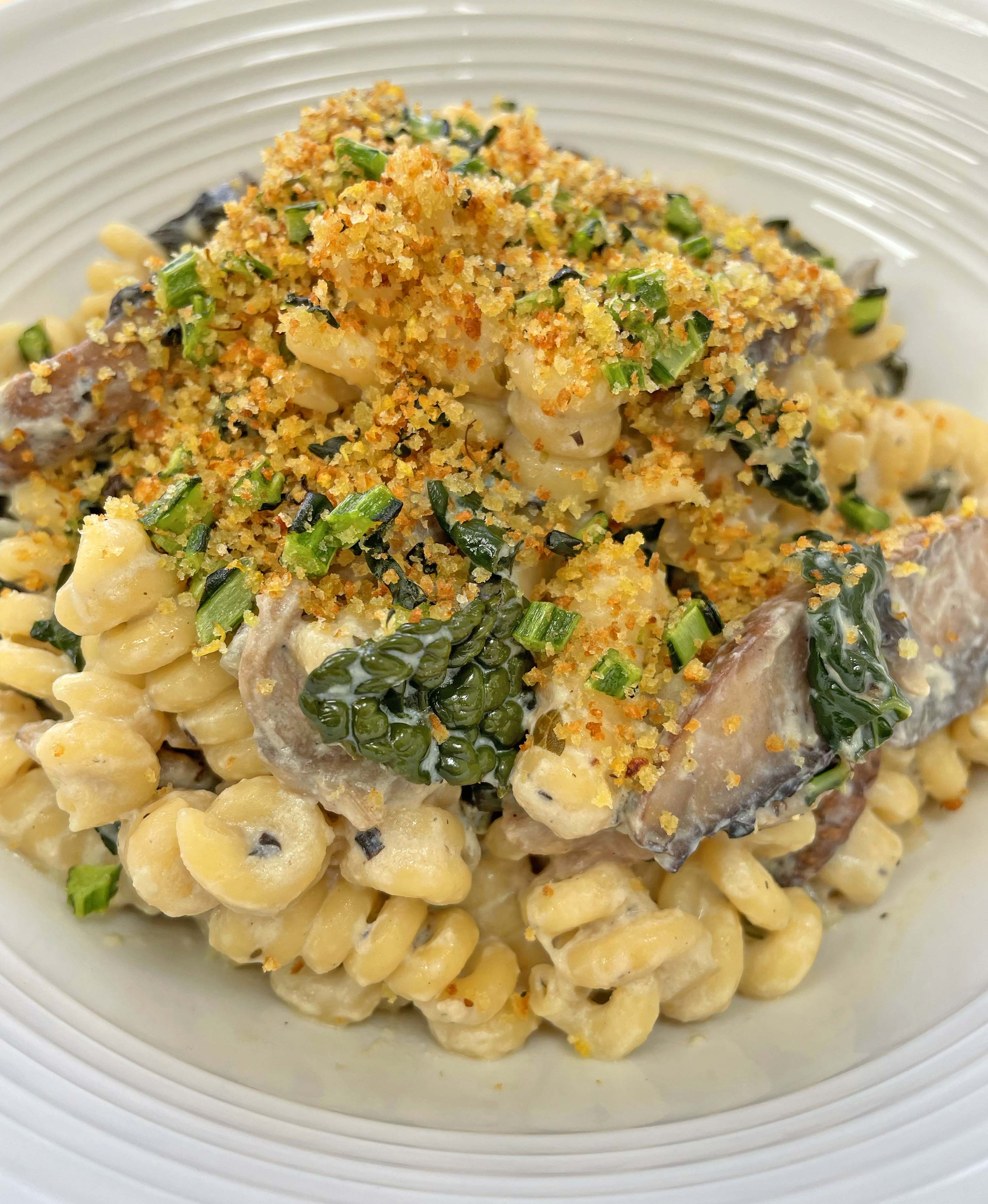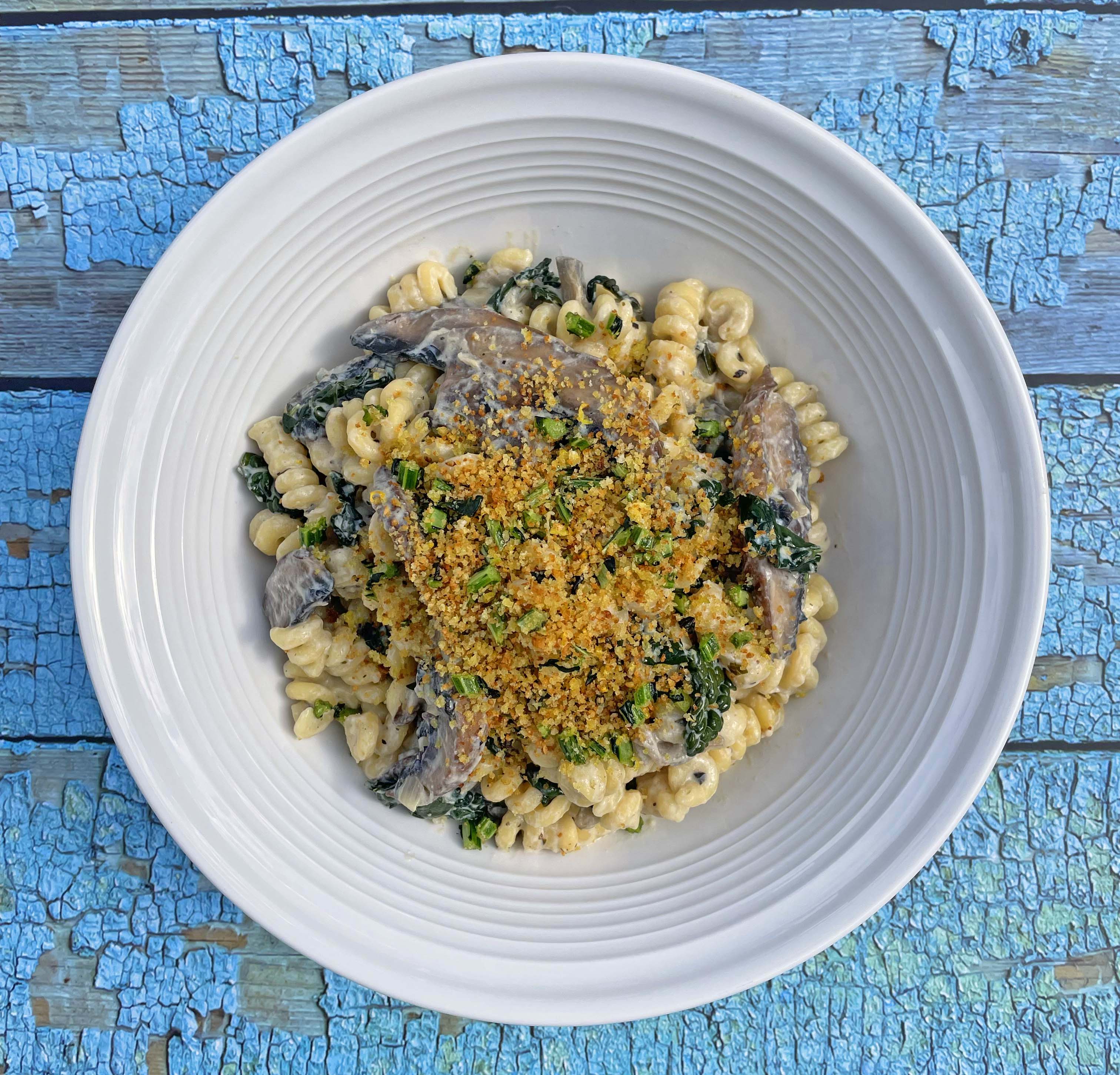 CREAMY VEGAN CAVOLO NERO & MUSHROOM PASTA