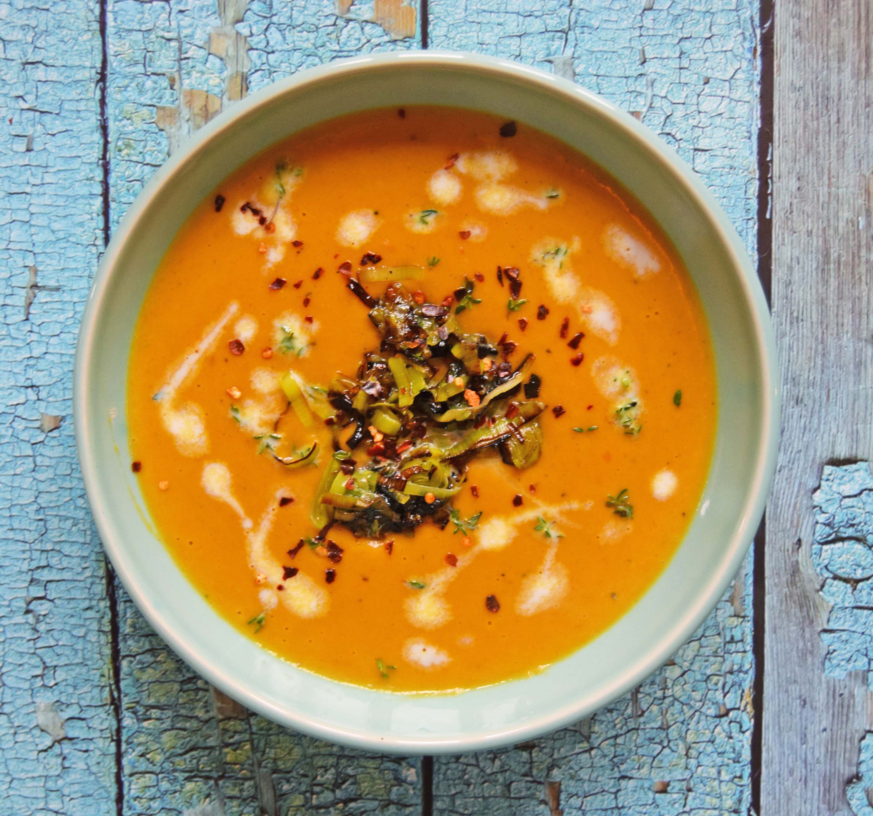 Creamy Low Fat Leek and Sweet Potato Soup