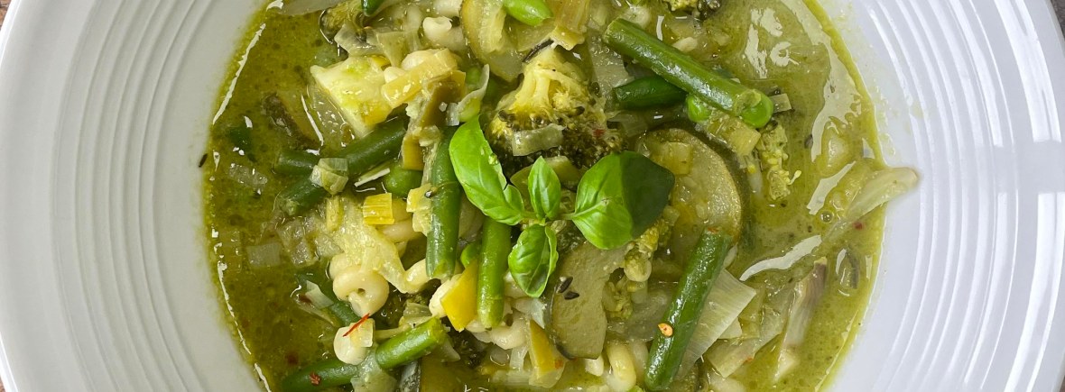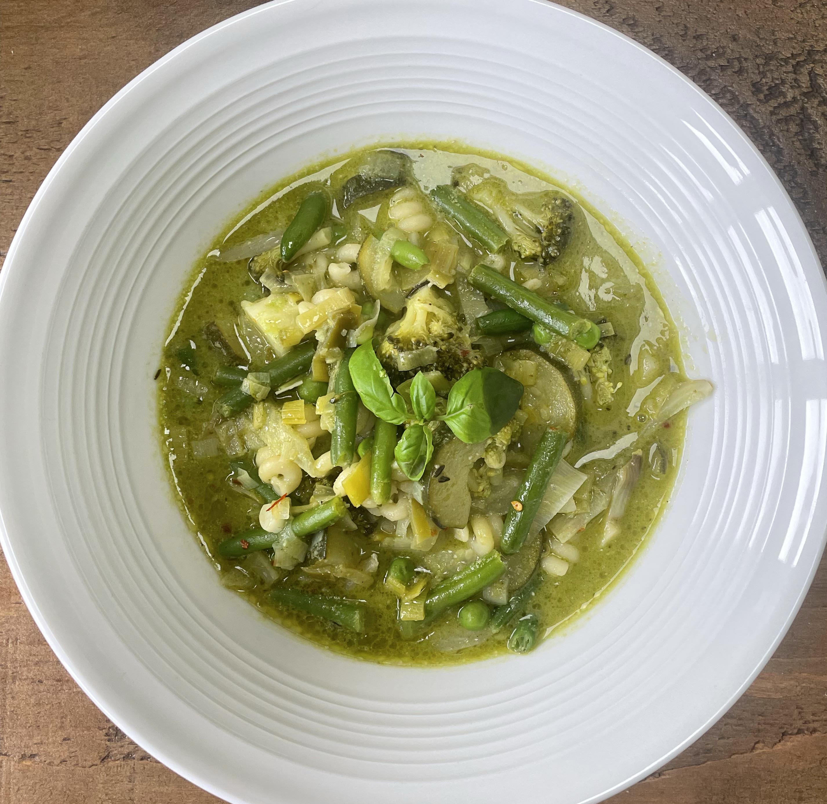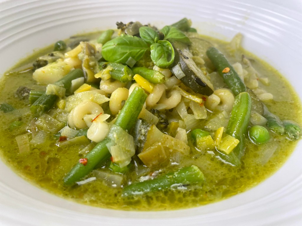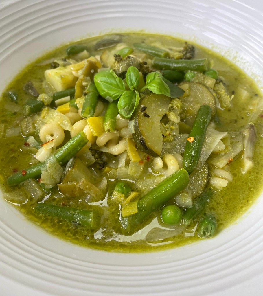 Full of greens, and my pea pesto recipe, it is delicious and healthy. You can use any green vegetables you have in the fridge, if you have the pesto, you cannot go wrong.