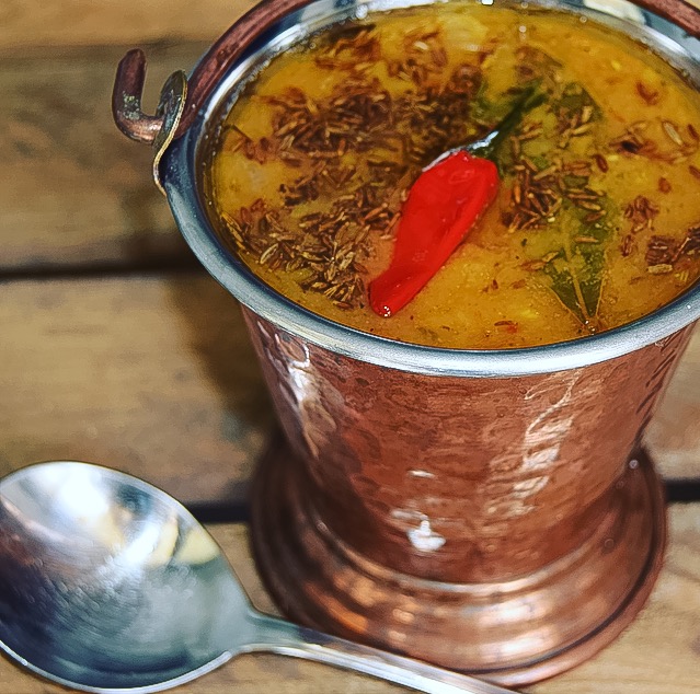 - Heat the ghee in a saucepan, add the chilli and cook for a couple of minutes then add the cumin seeds, cook for another couple of minutes then pour straight over the dal curry.